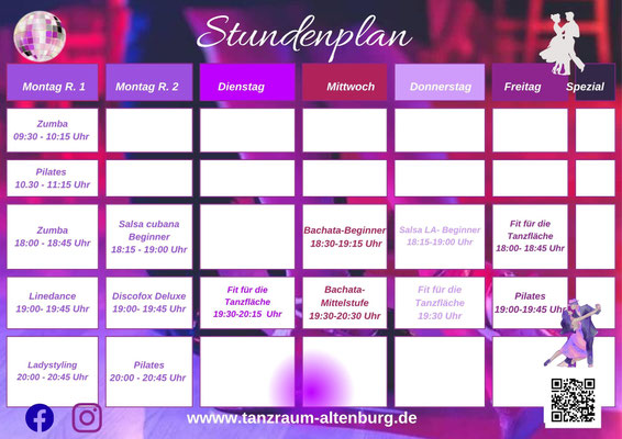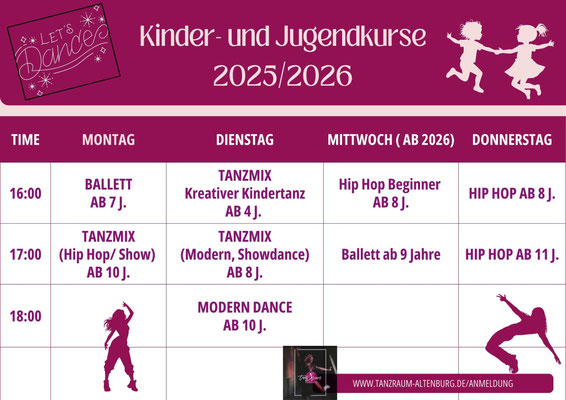 Unsere aktuellen Kurspläne bieten ein vielfältiges Programm für alle Altersgruppen und Niveaus – von Kindertanz über Hip Hop bis Gesellschaftstanz.